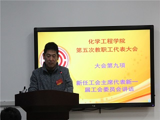 1月11日,化学工程学院第五次教职工代表大会在留培楼D106报告厅隆重召开,学校工会副主席汤平如应邀出席了此次大会并致辞,学院院长杨朝合、党委书记冯宝鹏等58名教职工代表参加了此次大会。大会分为两个阶段,分别由工会主席张秀霞和工会副主席郭孟主持。