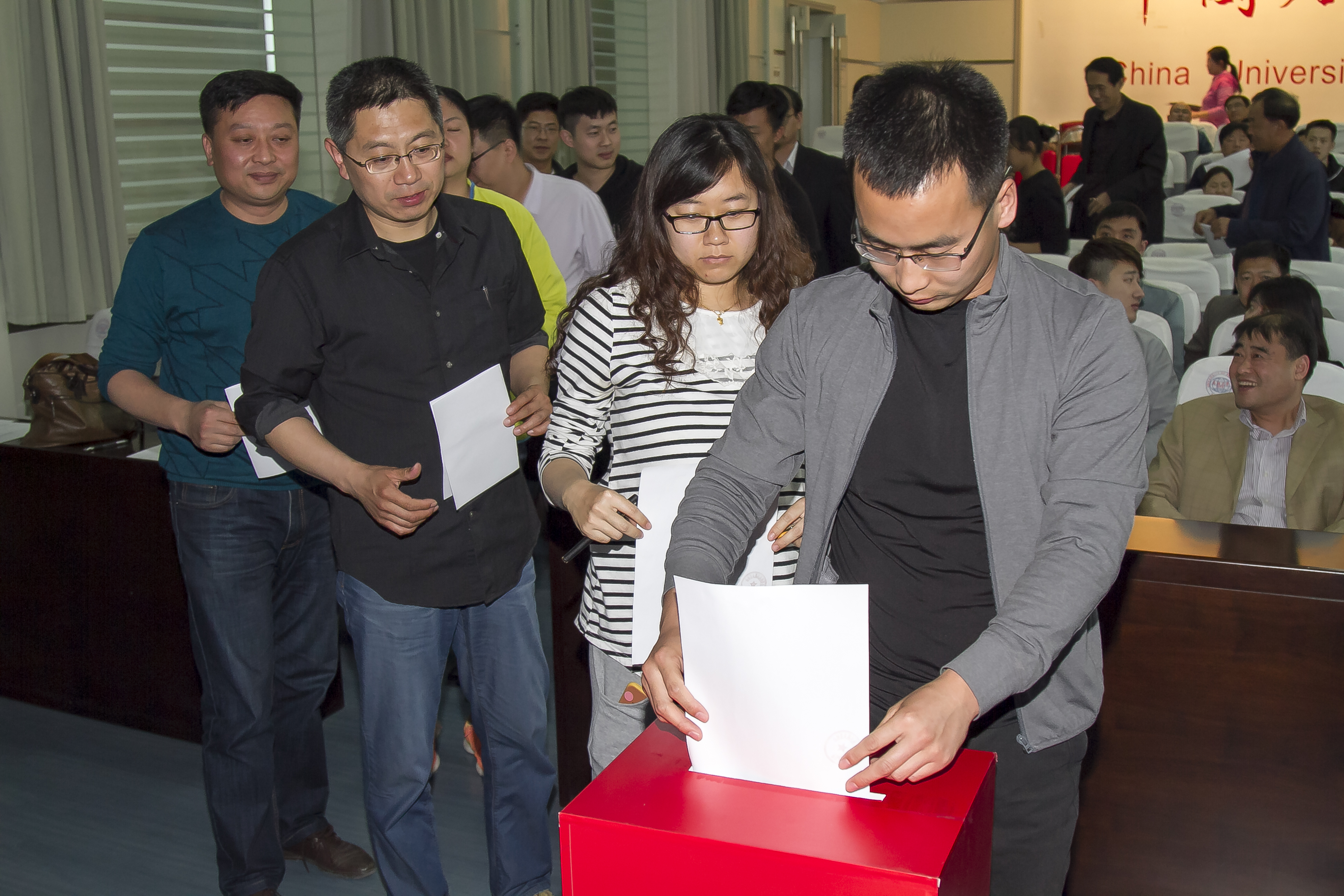 5月3日上午召开了东营校区机关第一届工代会预备会议,通报了首届工代会前期筹备情况,推荐了机关工会委员会委员候选人,并表决通过了工代会资格审查小组、提案工作小组、选举工作的监票人、计票人以及列席代表人员名单。4日下午举行了东营校区机关第一届工会会员代表大会第一次会议,与会代表听取了东营校区工会工作报告,选举产生了第一届工会委员会。本次会议实到正式代表61人,列席代表3人。