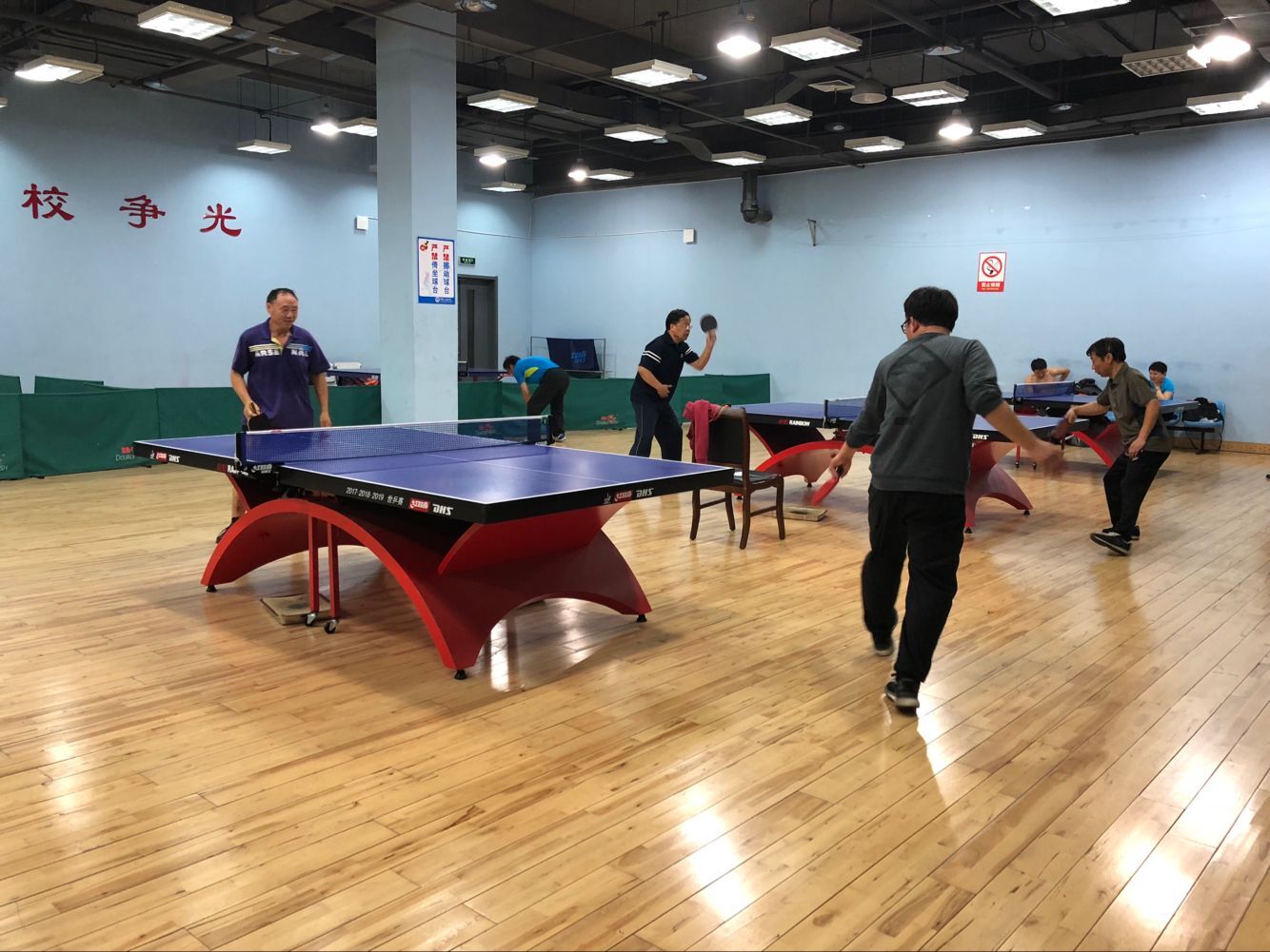 2018年5月11日下午,马克思主义学院工会组织学院全体教师在学校体育馆乒乓球室举行了马院乒乓球男子排位赛。比赛采取大循环,三局两胜制。经过激烈的角逐,最终叶立国老师获得男子单打一哥称号。