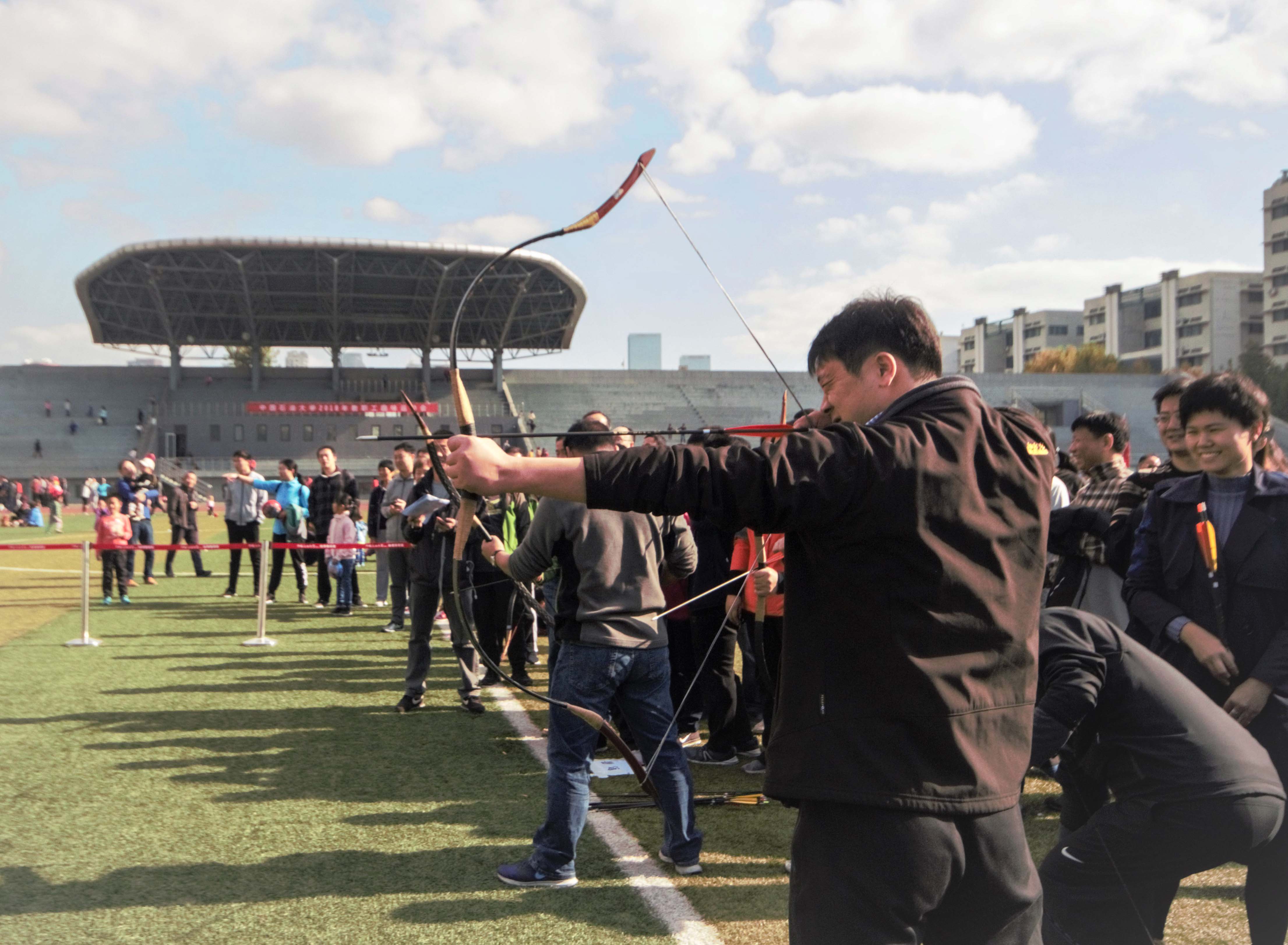 本次趣味运动会以“爱石大、爱校园、健步行”为主题,设有校园健步行、旋转背投、风雨同舟、8字跳绳、众星捧月、自行车慢骑、射箭、摸石头过河、滚铁环等个人和集体项目。共计有17个单位的2800余人次参加活动。