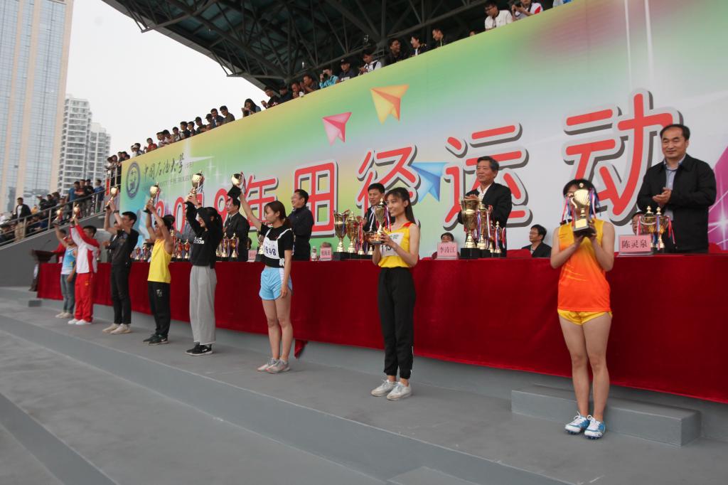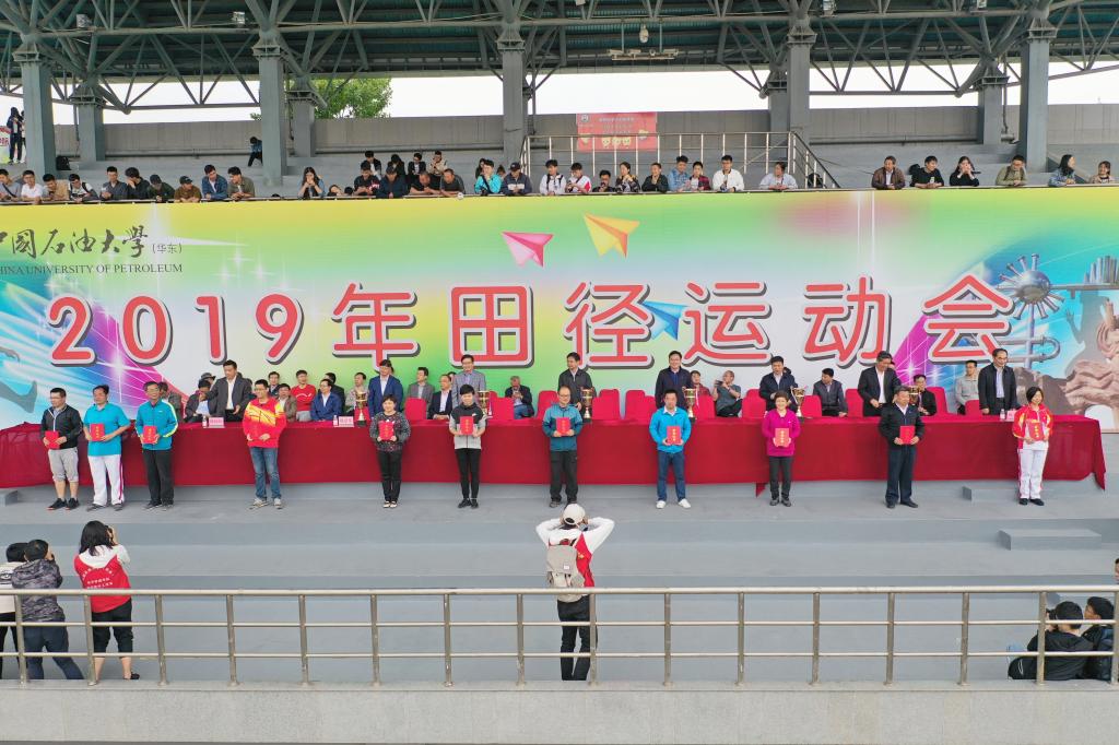 校体育运动委员会主任、党委副书记、纪委书记杨茂椿,副校长操应长、工会主席张军、学生处处长姚海田、财务处处长耿颜军、武装部部长李涛江、东营校区党委工委副书记杨同伟、设备处处长陈灵泉为获奖运动员和单位颁奖。