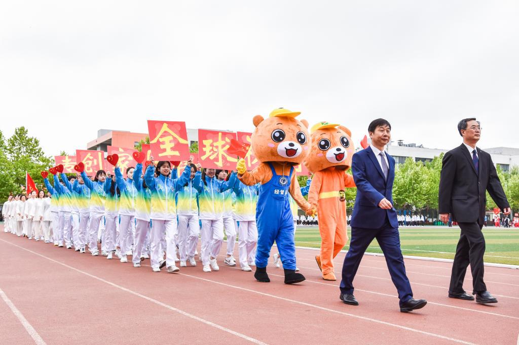 经济管理学院代表队,走在队伍前面的是党委副书记刘江华同志和工会主席翟广森同志。