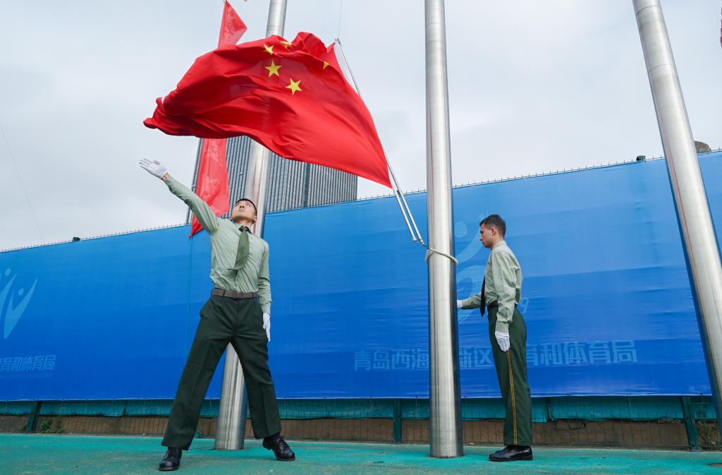 伴随着整齐划一的步伐,铿锵有力的口号,来自青岛、东营校区的各参赛单位代表队在各单位党政主要负责人和工会主席带领下,身穿色彩斑斓的服装统一入场,使运动场上洋溢着青春亮丽的气息。“起来,不愿做奴隶的人们……”伴随着庄严的国歌,在全体师生的注目礼中,五星红旗迎着朝阳缓缓升起。