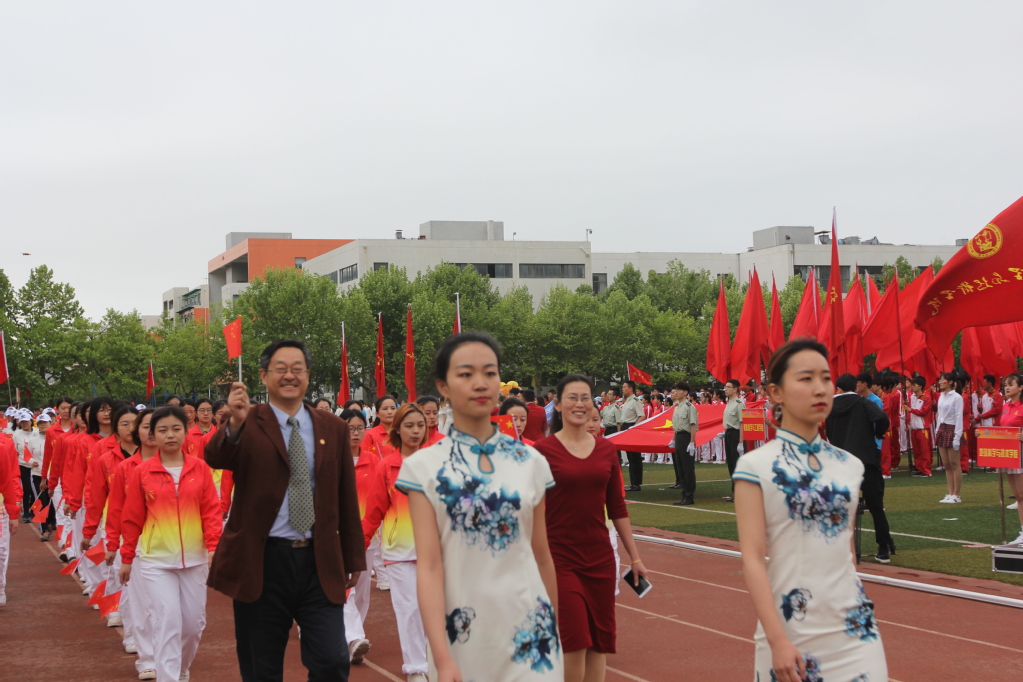 机电工程学院代表队,走在队伍前面的是学院党委书记李海林同志和工会主席赵青同志。