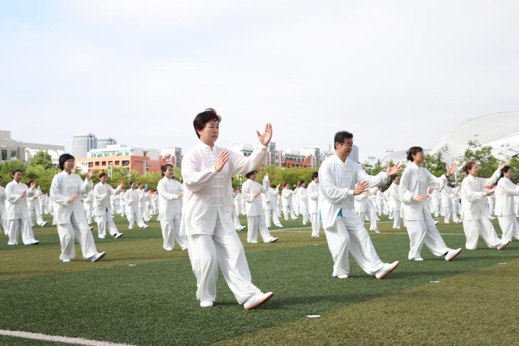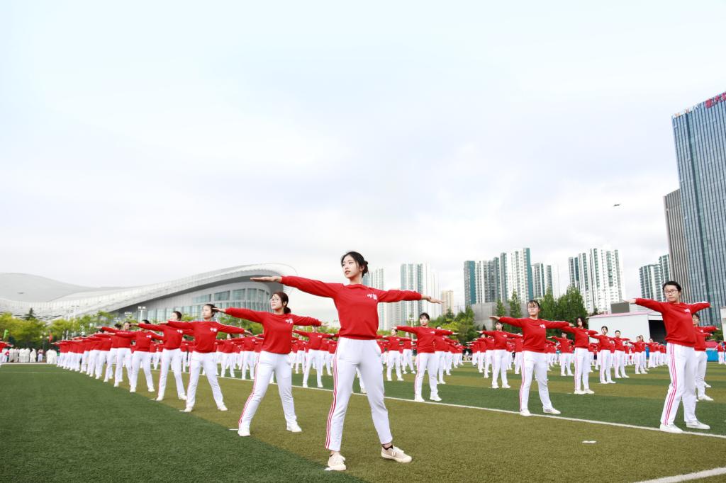 体育场后方升起七色彩烟,为运动场带来一片沸腾。大学生带来的广播体操表演有朝气、有力量、整齐划一,统一的红色着装正像是早晨七八点钟的太阳,带着希望,元气满满;650名的教职工太极拳表演有气度、有风骨、张弛有度,刚柔并济,彰显了为祖国建设助力的石大人的风采;大学生啦啦操表演有活力、有激情、震撼人心,传递着对祖国70周岁的庆贺与祝福。。