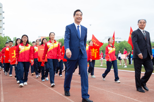 党委副书记、体育运动委员会主任万云波致开幕词,代表学校向本届运动会的成功举办表示祝贺,向为运动会辛勤付出的师生员工表示衷心感谢,向各位回家的校友表示诚挚欢迎。他指出,今年是中国共产党成立100周年,也是学校“十四五”开局之年。希望广大师生以本次运动会为契机,加强体育锻炼,以更加饱满的热情和健康的体魄投入到学校各项事业的建设中,为建设石油学科世界一流、多学科协调发展的高水平研究型大学而努力奋斗,以优异成绩向建党100周年献礼。