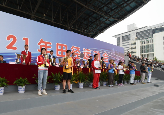 校体育运动委员会主任、党委副书记万云波、工会主席张军、体育教学部主任王锋、书记王永胜、副主任王海滨、学生处处长姚海田、财务处处长耿彦军、保卫处处长李子德、后勤管理处处长姜永增为获奖运动员和单位颁奖。