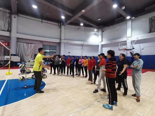 12月9号,在校体育馆篮球馆,教职工女子中年气排球队组织第一次训练,参加训练的队员23人,教练员王峰、林明贵、潘正鸿到现场指导训练。