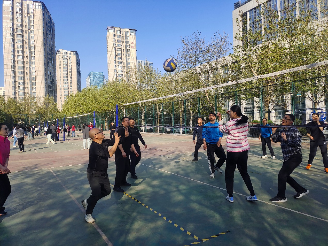 为深入贯彻全面健身理念,丰富广大员工的业余文化生活,4月25日,教育发展中心教职工气排球友谊赛在培训楼北侧排球场欢乐开赛,来自三个工会小组的10支队伍、60余人参加了活动。