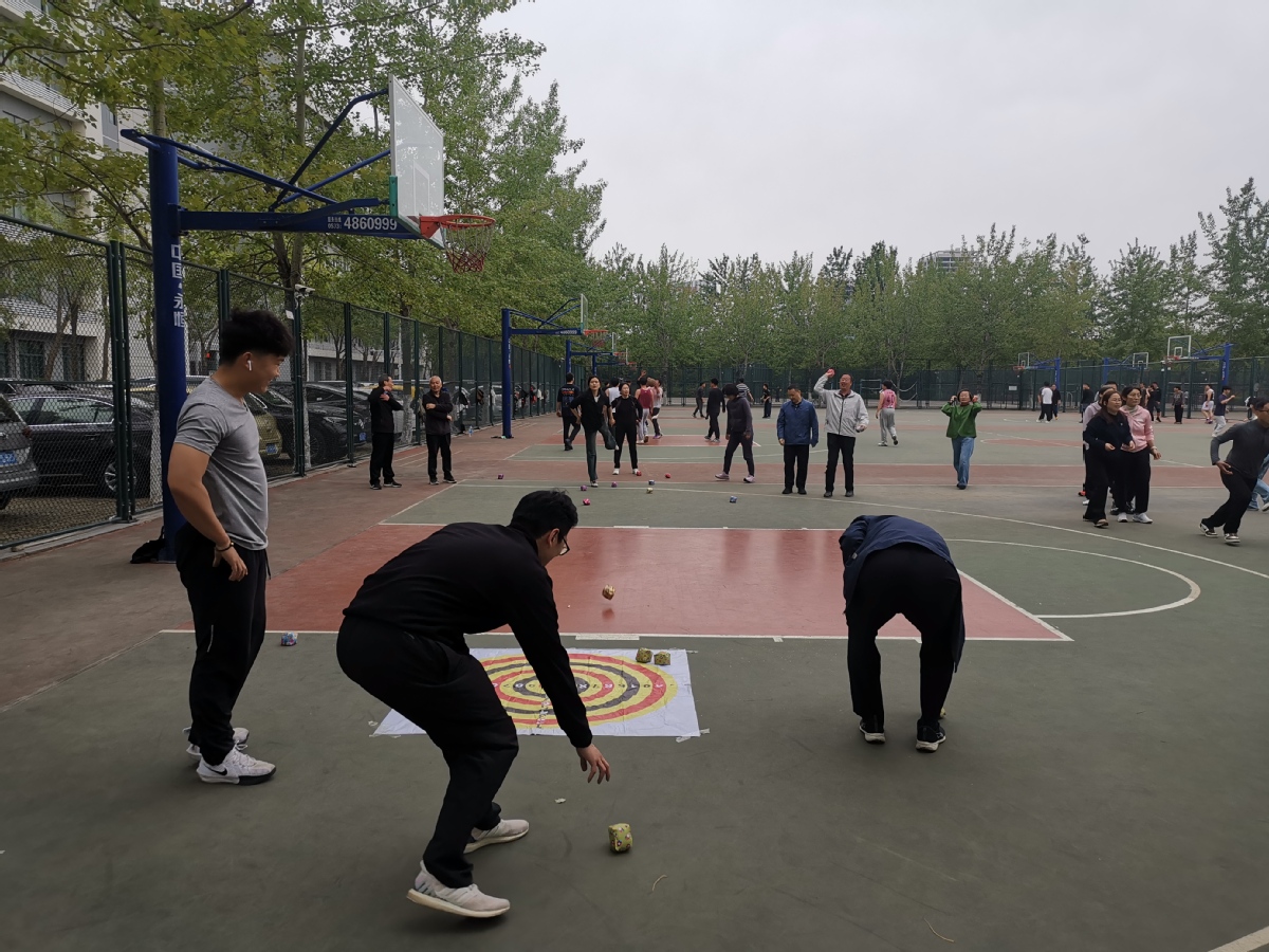 5月8日,地学院工会举行教职工趣味运动会赛前集训,学院党委书记牛庆玮到场指导。50余名教职工积极参与“8字跳绳”“众星捧月”“沙包掷准”“十米地滚球”四大项目演练,为即将到来的校运会蓄力备战。