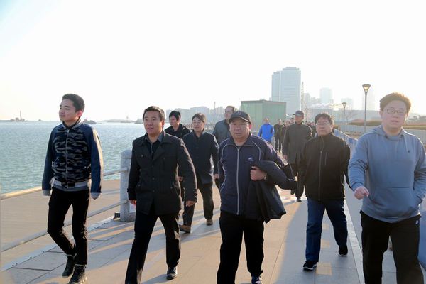随后,在学院工会主席于桂杰的带领下,70余名教职工开始健步行,沿唐岛湾公园步行6公里,大家个个精神抖擞,或三五结伴、或疾步快走、或悠闲漫步,一路上欢声笑语,欣赏着唐岛湾的海上风景,身心得到了极大的放松。到达终点后,部分老师还继续其他锻炼项目。