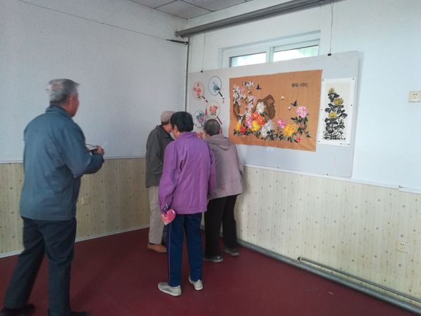 本次展览展出二十多位老师的艺术作品,有精美的十字绣、丝带绣,有大气脱俗的绢花,实用的团扇、宫灯,有精彩的摄影作品,淡雅的绘画作品,精致的编织品,还有老同志刚刚尝试的葫芦画。老同志们纷纷前往驻足欣赏,细细品味,研究技艺,互相切磋,还有老同志在自己的作品前合影留念。