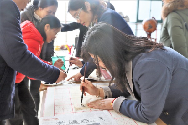 在杨老师的指导下,学院女老师们也纷纷提笔,挥毫泼墨,一幅幅散发着文韵墨香的作品引人入胜,女老师们一边认真地进行现场创作,一边对运笔、章法、落款、印章等技术进行互相点评、交流探讨,在一片欢声笑语中共同度过了一个欢乐、祥和、有意义的“三八”妇女节。